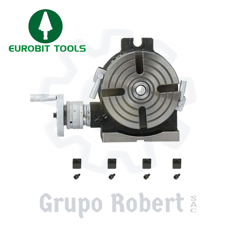 La Mesa Giratoria EUROBIT es una herramienta utilizada para sujetar y girar piezas durante el mecanizado. Está diseñada para proporcionar una sujeción firme y precisa, permitiendo realizar trabajos de mecanizado con alta precisión y eficiencia.