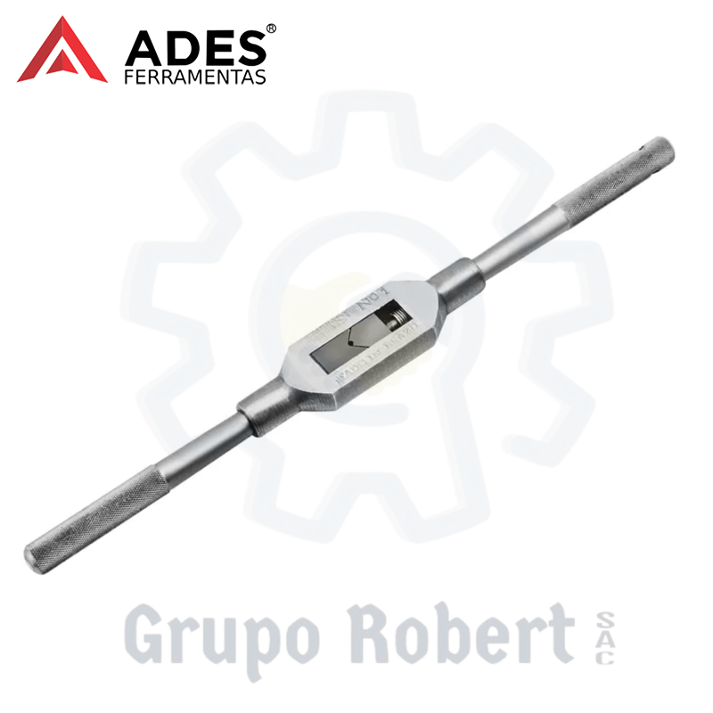 El Porta Macho de ADES es una herramienta manual utilizada para el giro de machos de roscar y escariadores. Es ideal para realizar roscas precisas en agujeros internos.
