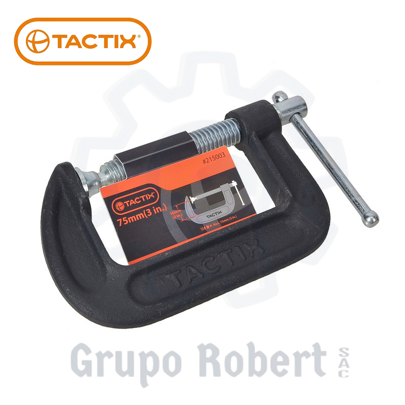 La PRENSA EN C 3”/75MM #215003 de la marca Tactix es una herramienta manual de alta calidad, ideal para diversas aplicaciones de mantenimiento y reparación.
