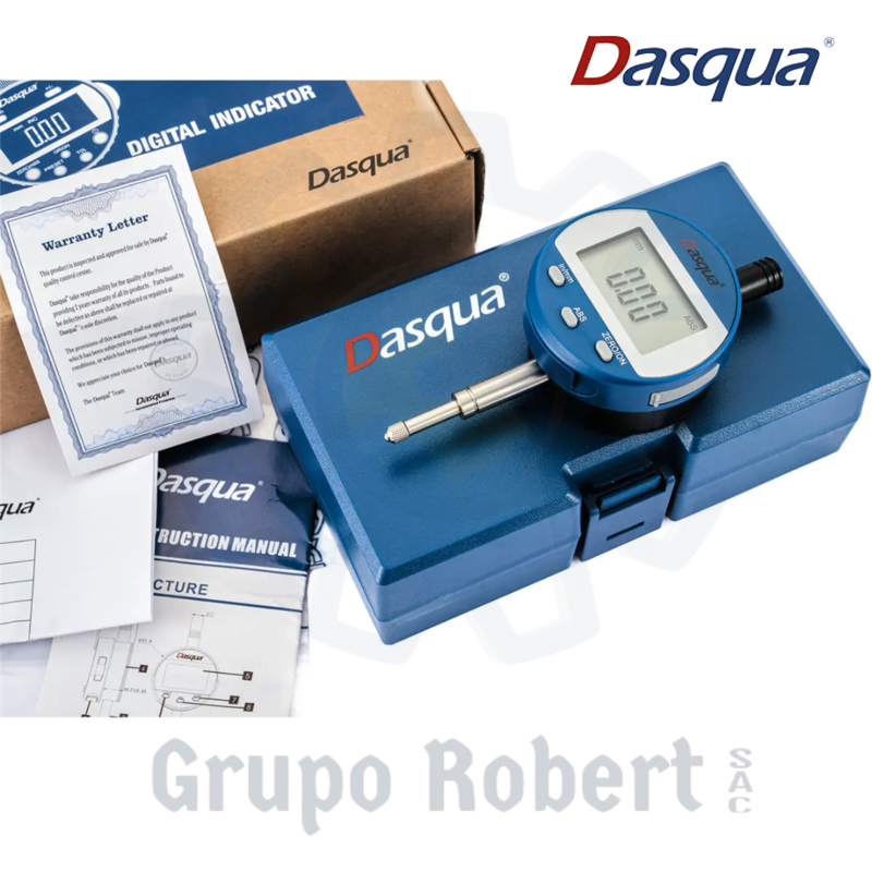 El Reloj Comparador Digital de Dasqua es una herramienta de medición de alta precisión diseñada para verificar la exactitud de piezas y componentes en diversas aplicaciones industriales. Este reloj comparador digital es robusto y fácil de usar, proporcionando mediciones confiables y precisas con una pantalla LCD clara y legible.